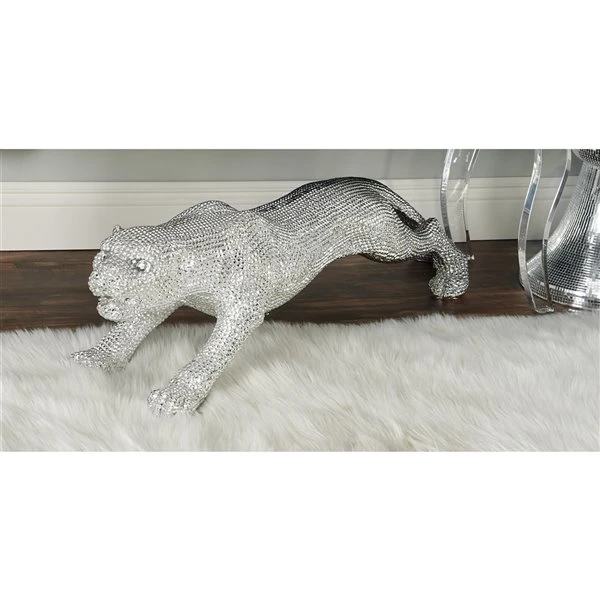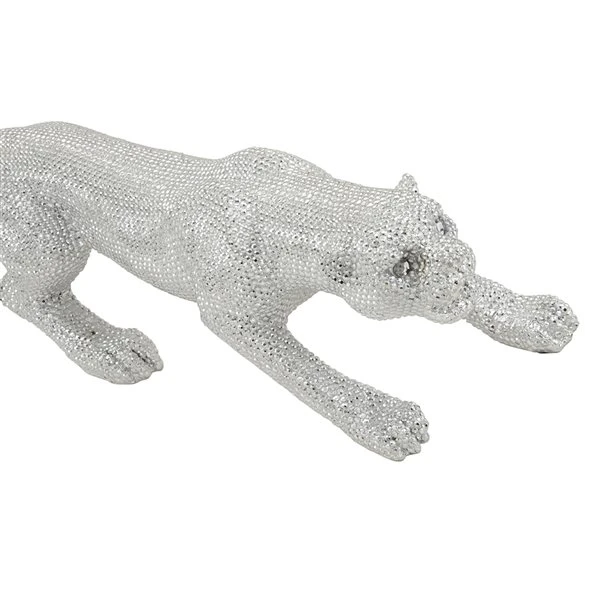 Grayson Lane Glam – Silver Poly Stone Leopard Sculpture – 11-in X 42-in