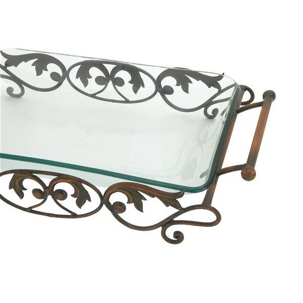 - Elegant scrolling details on the metal frame