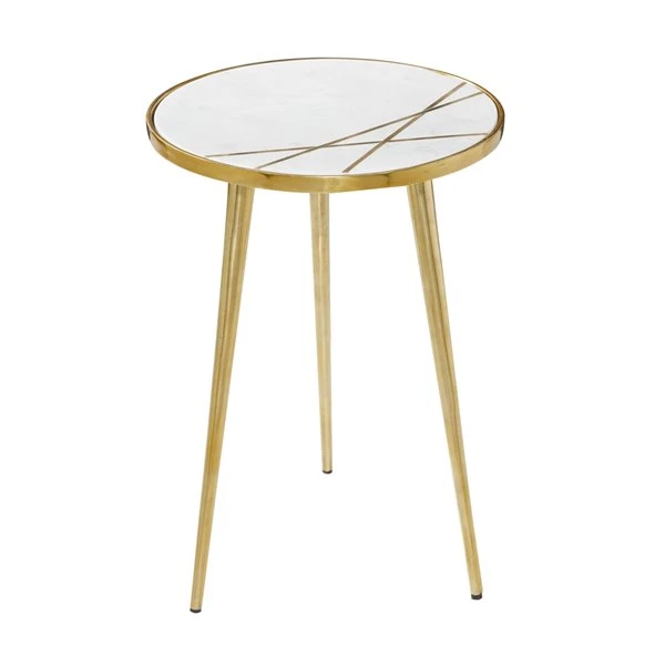 - The marble accent table has a white and gold palette that looks gorgeous in modern-style rooms