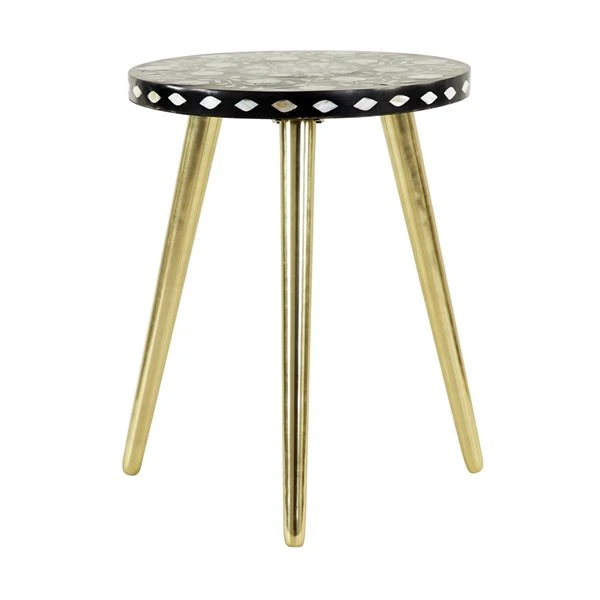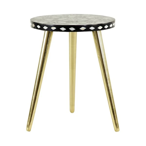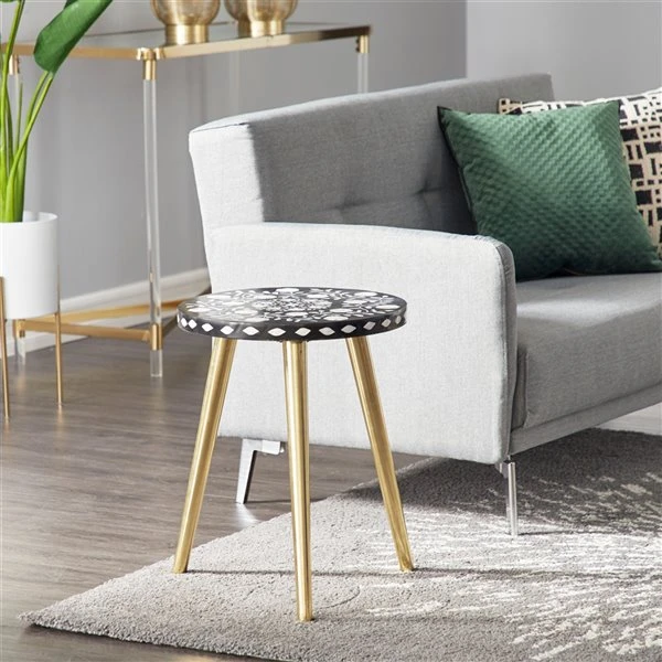 - This wood accent table for living room showcases a reliable construction of stainless steel and medium-density fibreboard, the tabletop is inlayed with oyster shell forming flowers and diamonds