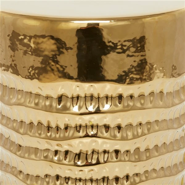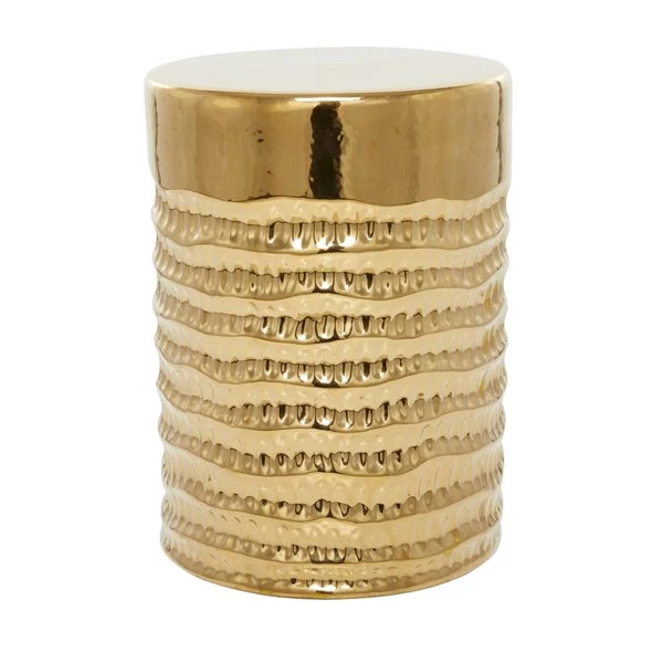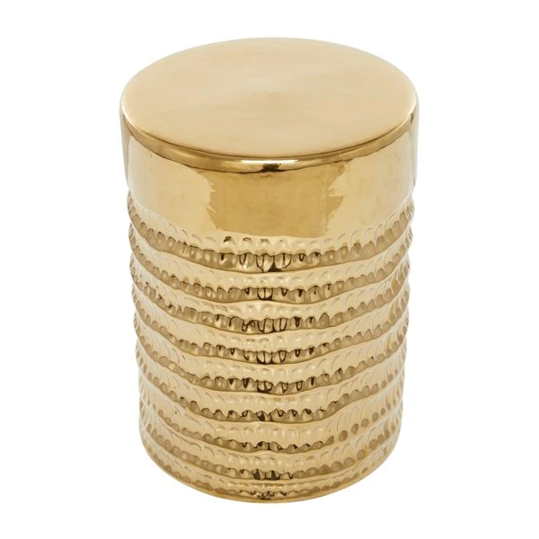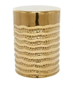 - This ravishing accent table showcases a metallic gold ceramic finish