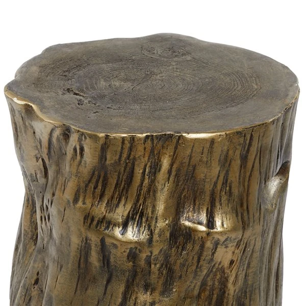 - This elegant tree trunk stool features a captivating metallic gold finish
