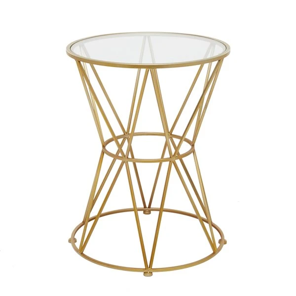 - A sophisticated drum accent table made of robust tempered glass table top and metal frame materials