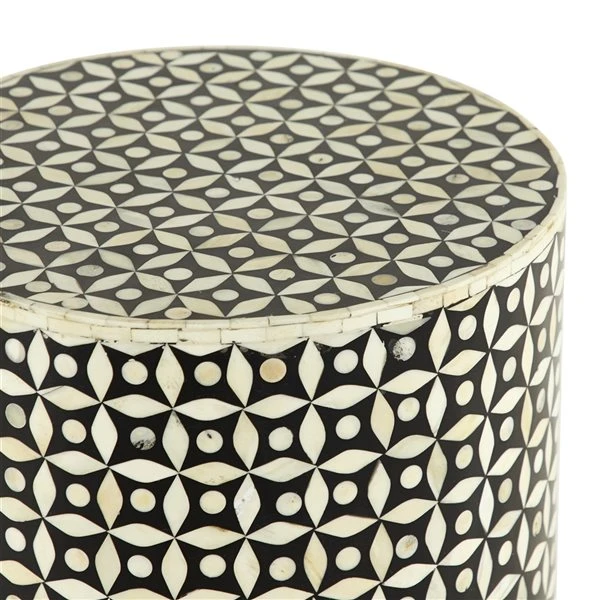- Features buffalo bone inlays in elaborate floral design on the tabletop and sides