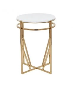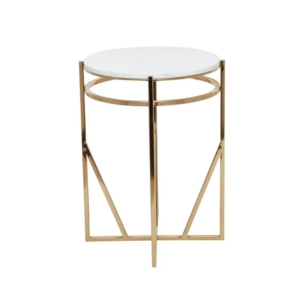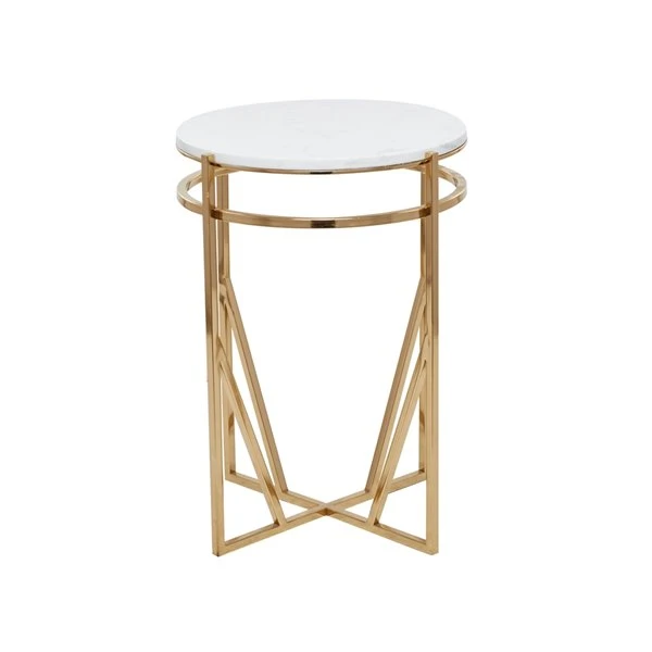 - A sophisticated white and gold accent table made of long-lasting marble top and metal frame materials