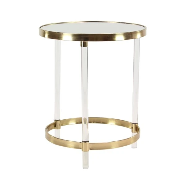 - This gold accent table is composed of quality metal and acrylic, resulting in a long-lasting design
