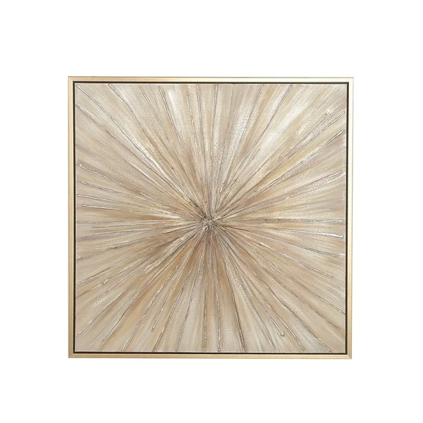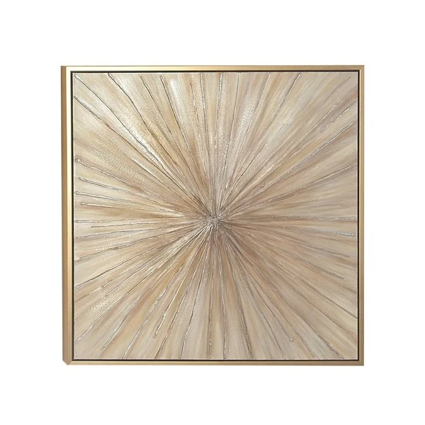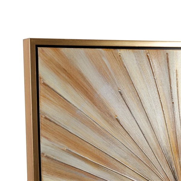 - Metallic gold frame housing an acrylic painting featuring a starburst design with lines jutting out from the centre point