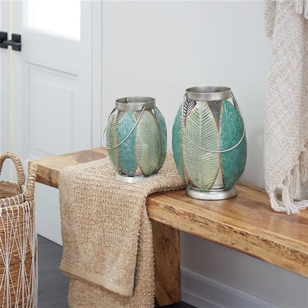 Grayson Lane Green Leaves Metal Lantern Candle Holder – Set of 2