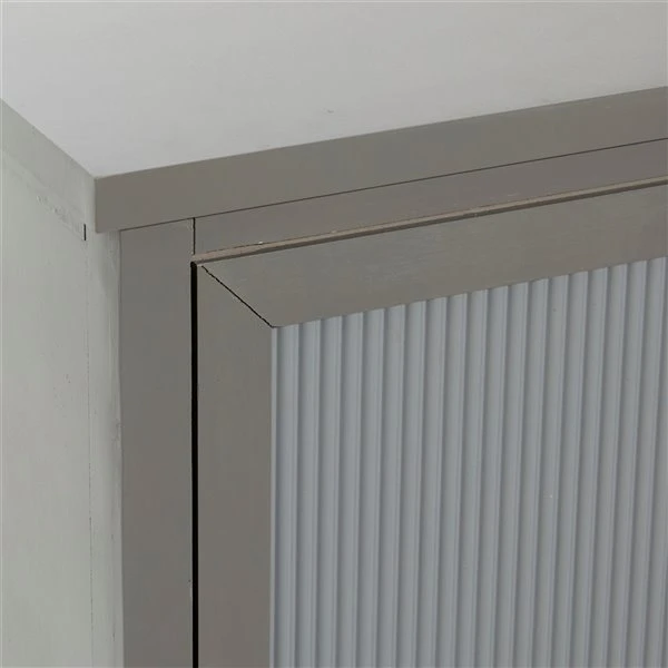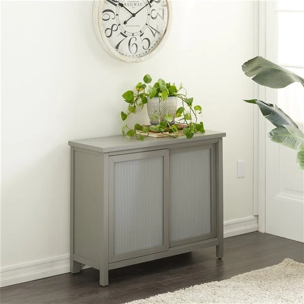 - This elegant wood cabinet comes with a solid grey wooden finish