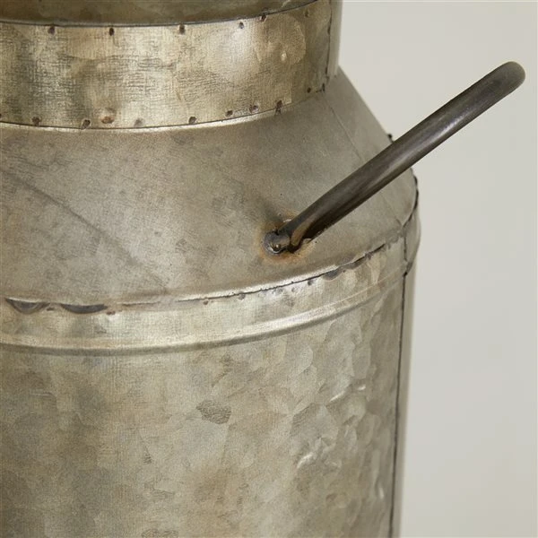 - This iron milk jug set has a rugged galvanized iron sheet hammered into shape with reinforced necks and handles with wide slanted lips