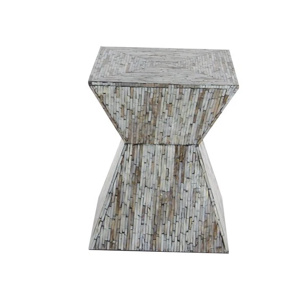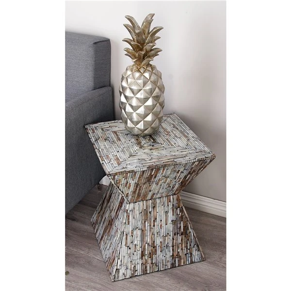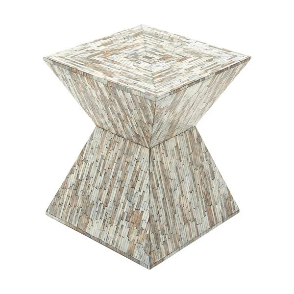 - This hourglass accent table comes in multicolour finish that goes well with contemporary-inspired interior