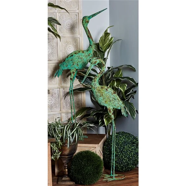 - These mint green crane statues with decorative rustic distressing beautify both indoor and outdoor garden