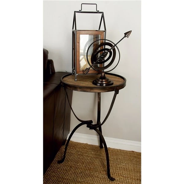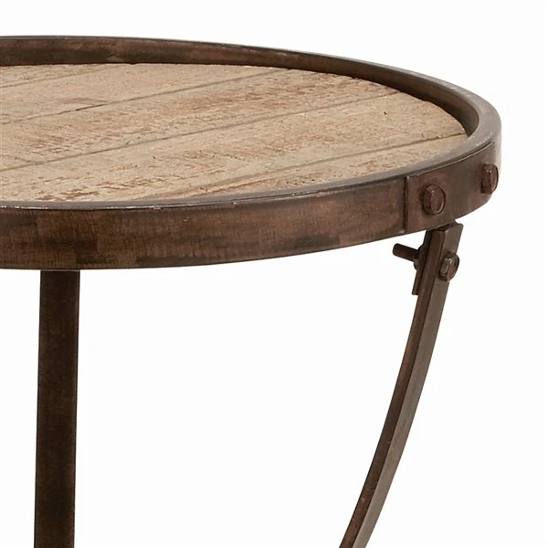 Grayson Lane Industrial Brown Iron and Wood Round End Table