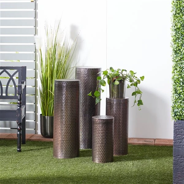 Grayson Lane Industrial Brown Metal Round Pedestral End Table – Set of 4