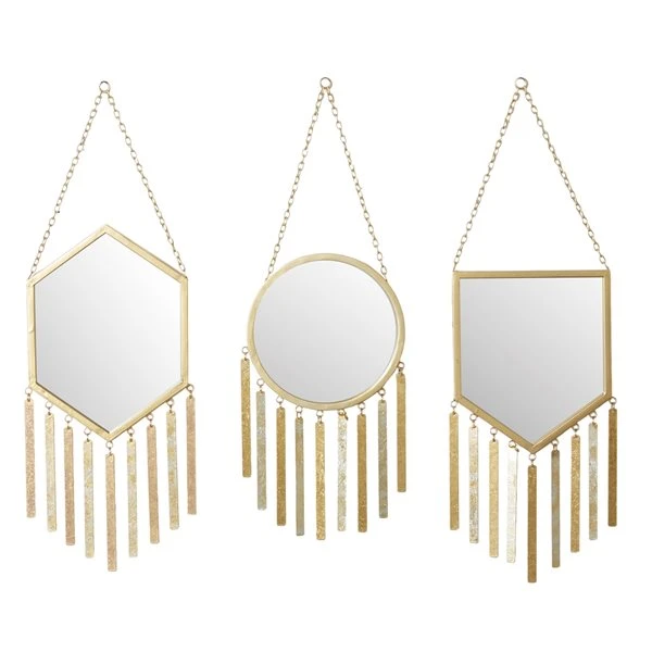 - Includes gold-framed hexagon, pentagon, and round mirrors