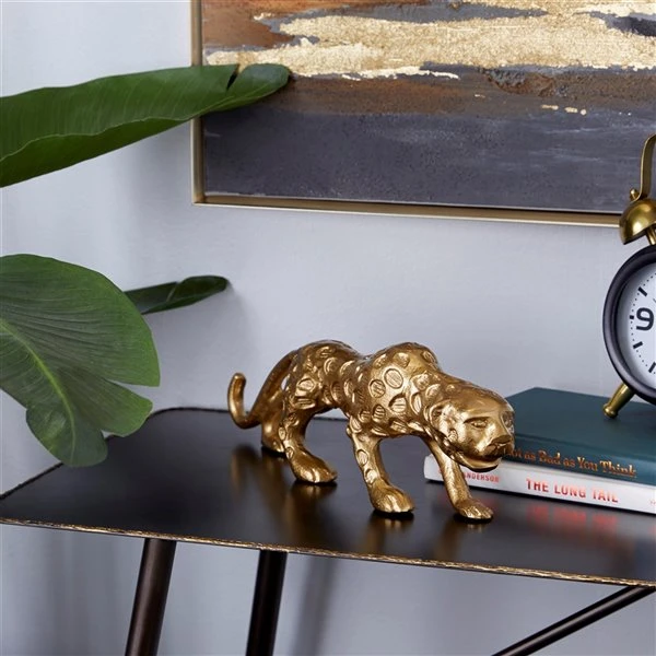 Grayson Lane Leopard Contemporary Sculpture – Gold Aluminum – 5-in X 3-in