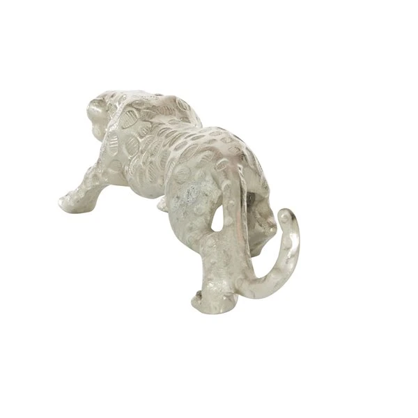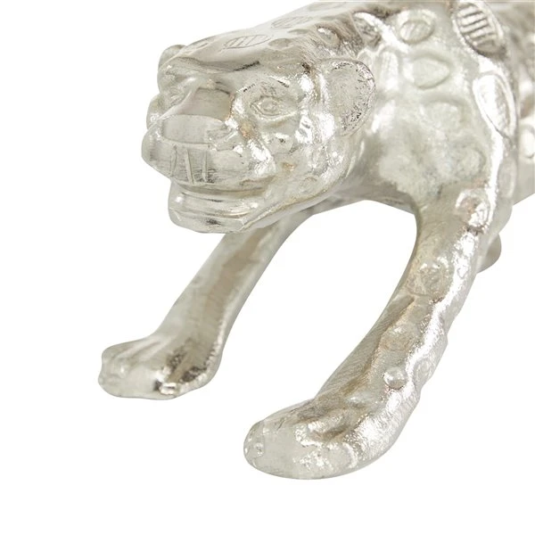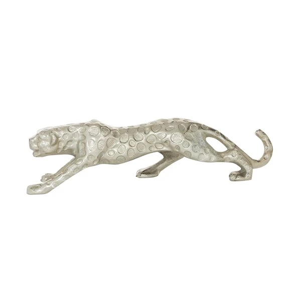 Grayson Lane Leopard Contemporary Sculpture – Silver Aluminum – 5-in X 21-in
