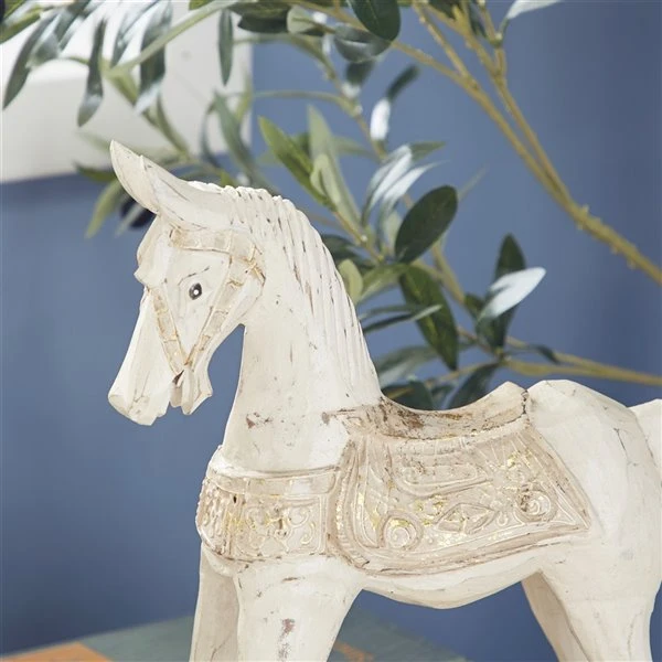 - This sculpture has a hors with ornate saddle and distressed details for a rustic effect