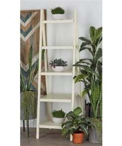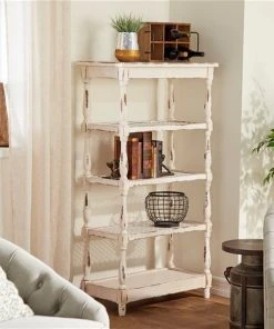 Grayson Lane 21-in x 65-in White Wood 5-Tier Traditional Shelving Unit