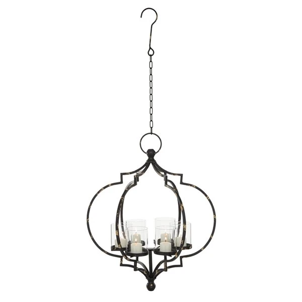 - Textural pendant lighting with Farmhouse and Industrial style, this metal chandelier has a unique pumpkin shape, metal hanging chain, and 6 glass candle holders.