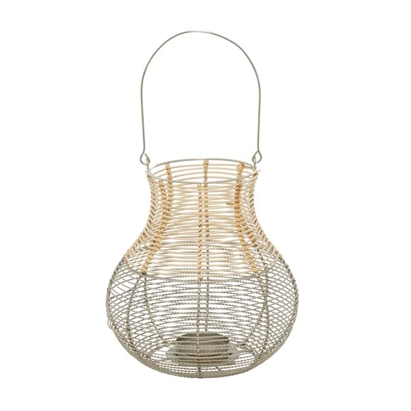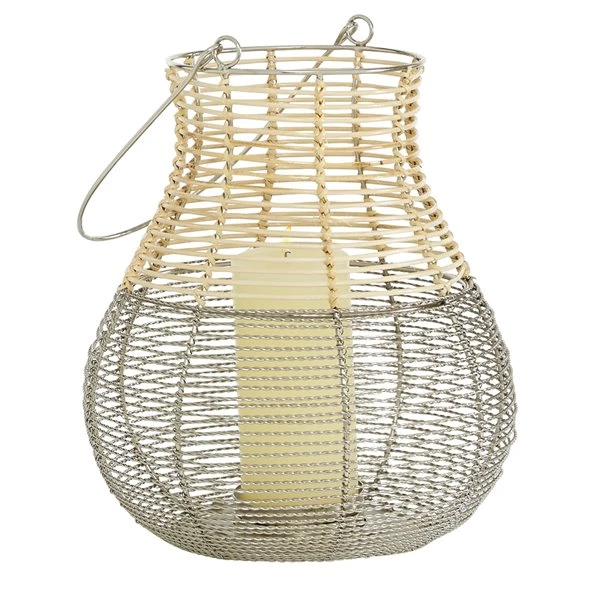 - A handle is featured for carrying or hanging the lantern and the round plate can hold a pillar candle in place