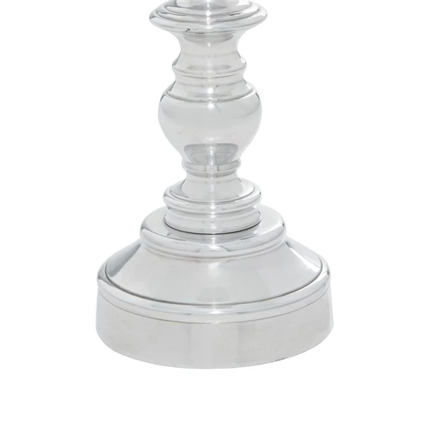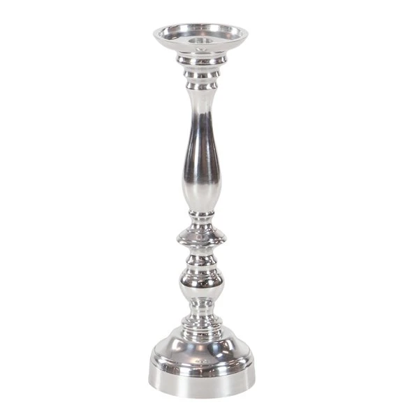 - Add instant warmth and inviting ambiance to your home with this silver aluminum candle holder set that is a great addition to contemporary interior. Crafted in a contemporary style that fits great in most homes