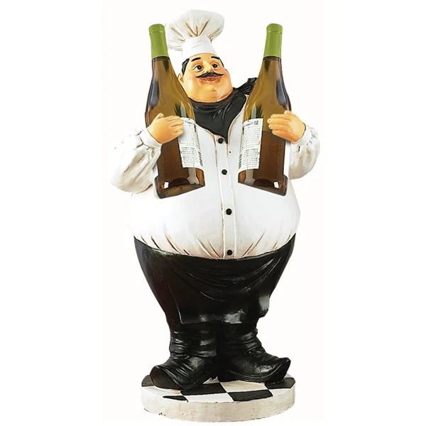 - A polystone chef sculpture can hold up to two standard wine bottles