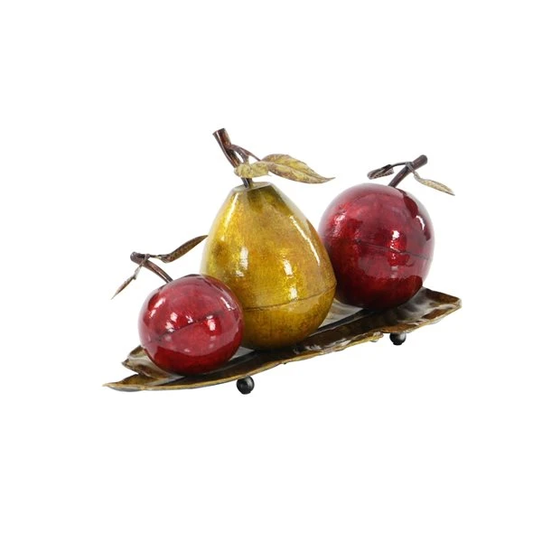- This metal fruit decor has 2 apples and a pear attached to a leaf tray