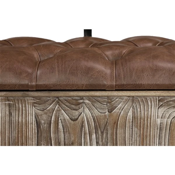 - This storage ottoman bench features tufted faux leather seat and backrest and a rectangular storage with natural wood marbling