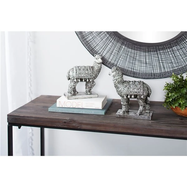 GRAYSON LANE Set of 2 10 In., 9 In. Silver Eclectic Llama Sculpture Resin