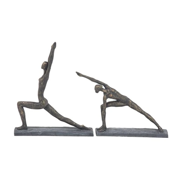 GRAYSON LANE Set of 2 11 In., 15 In. Brass Modern Yoga Sculpture Polyston