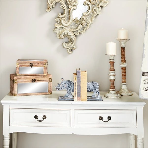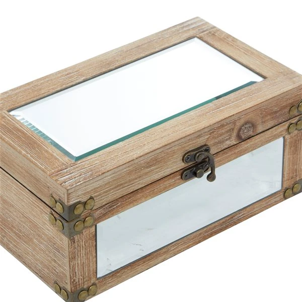 - Set of 2 wood and mirror decorative boxes with metal accent and latch
