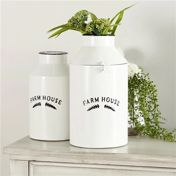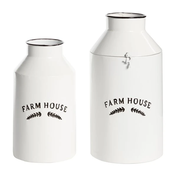 Grayson Lane Set of 2 14-in , 11-in Farmhouse Decorative Jar – White – Metal