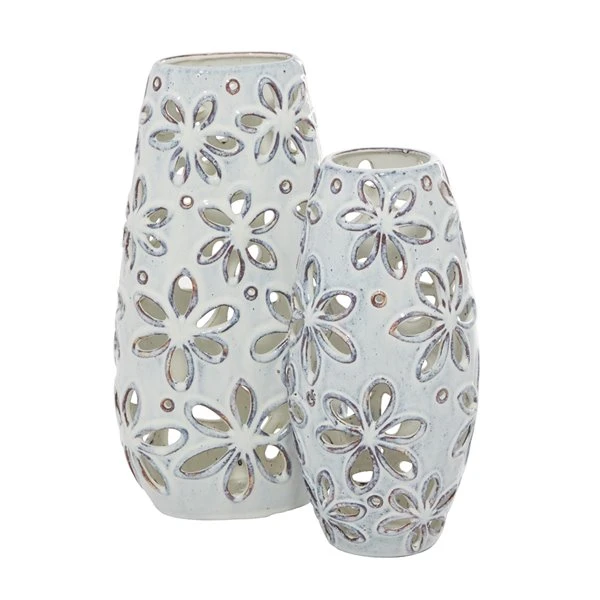 Grayson Lane Set of 2 14-in , 11-in Farmhouse Vase – White – Ceramic