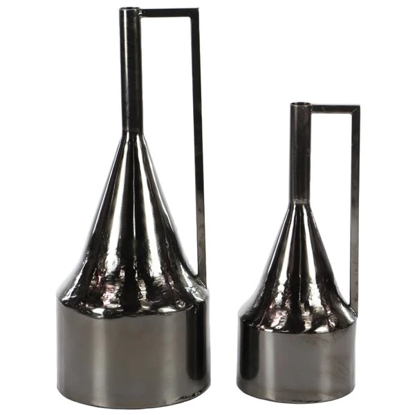 GRAYSON LANE Set of 2 17 In., 22 In. Glam Vase Black Metal