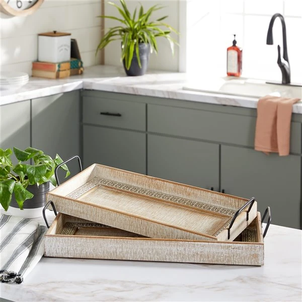 - Get organizing and decorating a chic vibe with these Bohemian carved wood trays placed on your counters or console tables
