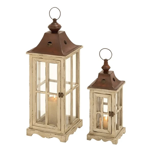 GRAYSON LANE Set of 2 26 In., 18 In. Coastal Lantern Cream Wood