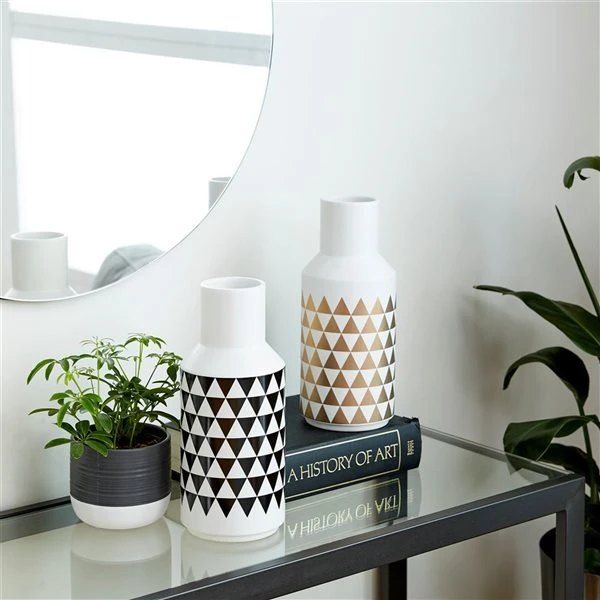- Designed with minimalistic and modern-styled triangular geometric patterns in black and gold finishes