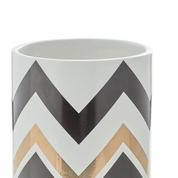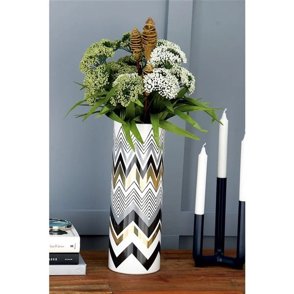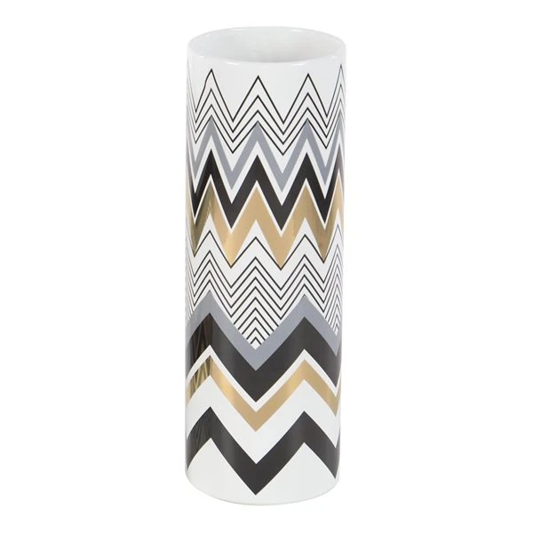 - Designed with modern-styled zigzag chevron patterns in black, grey, and metallic gold finishes