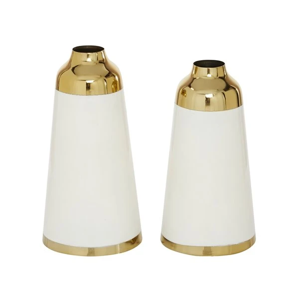 Grayson Lane Set of 2 6-in x 12-in Glam Vase – White – Metal