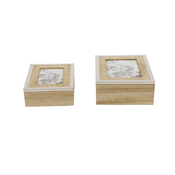- Each box has a glass-covered picture frame front and centre on the lid for you to display a 4-in x 6-in photo and a 5-in x 7-in photo, respectively.