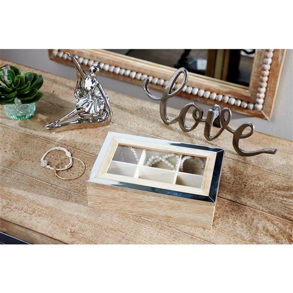 - This jewelry box with mirror trim has a transparent glass lid, where you can display your coveted jewelry in the compartments.