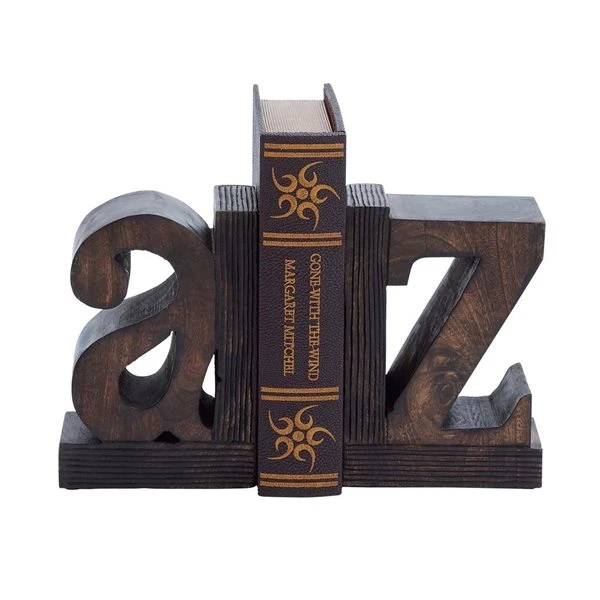 - These letter bookends for shelves feature the large letters A and Z on carved book platforms