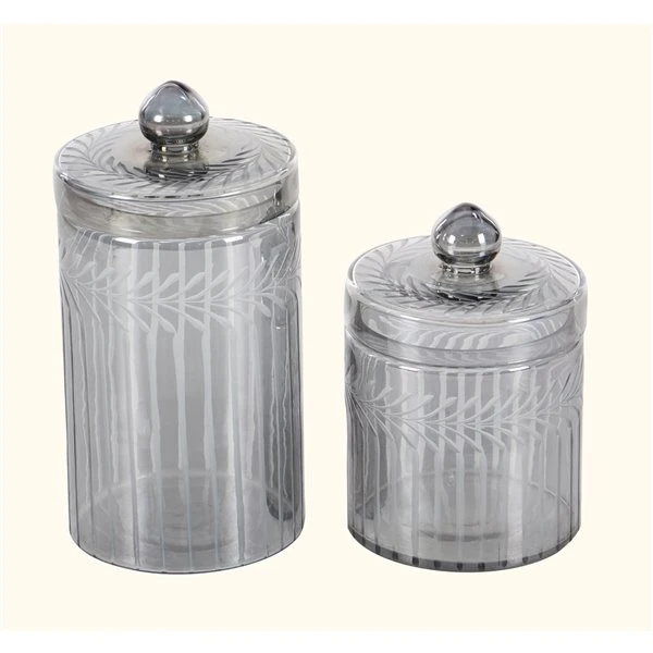 Grayson Lane Set of 2 Glam Decorative Jars in Grey Glass