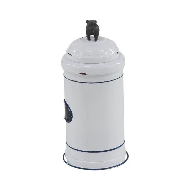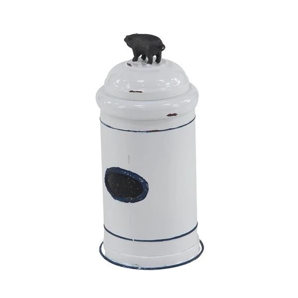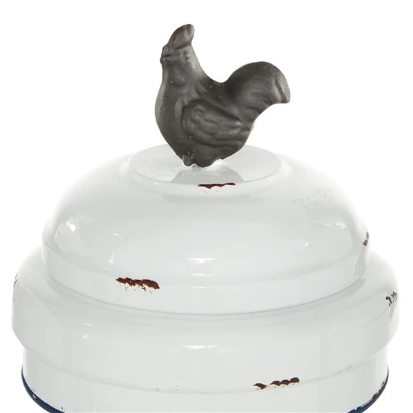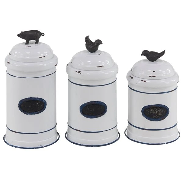 - Immense Farmhouse style and detail throughout this set of 3 large, round white metal jars