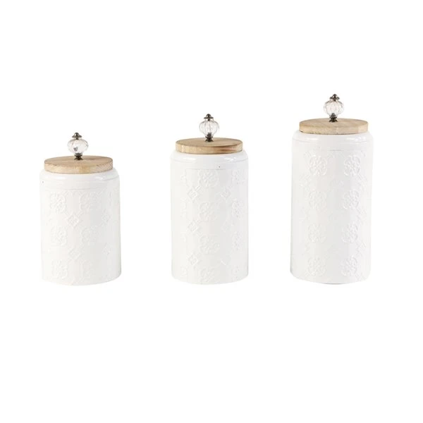 Grayson Lane Set of 3 12-in , 10-in , 9-in Farmhouse Decorative Jar- White – Metal