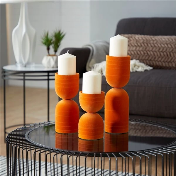 GRAYSON LANE Set of 3 13 In., 10 In., 7 In. Modern Candle Holder Orange M