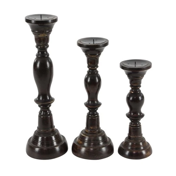 Grayson Lane Set of 3 18-in, 15-in, 12-in Farmhouse Candle Holder – Black Mango Wood