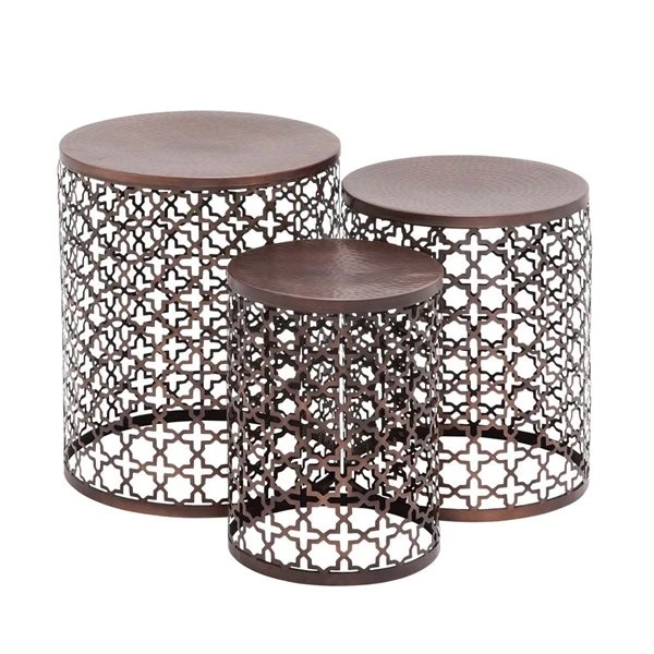 Grayson Lane Set of 3 20-in, 18-in, 16-in Industrial Accent Table – Brown Metal