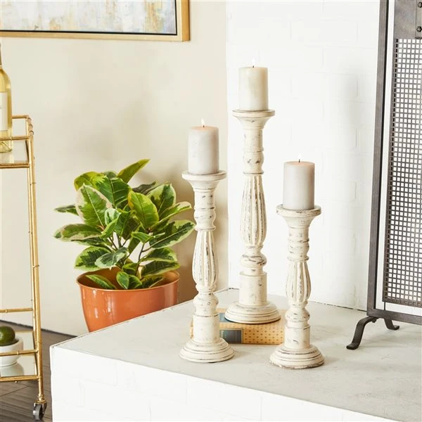 Grayson Lane Set of 3 21-in, 17-in, 15-in Traditional Candle Holder – White Mango Wood